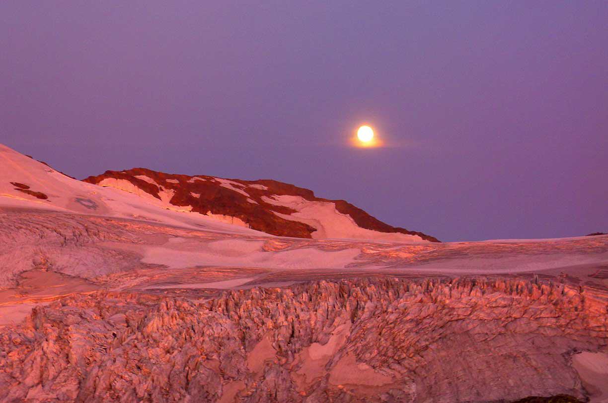 Am Tag sind wir unterwegs auf den Bergen. Das letzte Abendlicht erwarten wir im warmen Schlafsack bis der kraftvolle Erdtrabant erscheint!